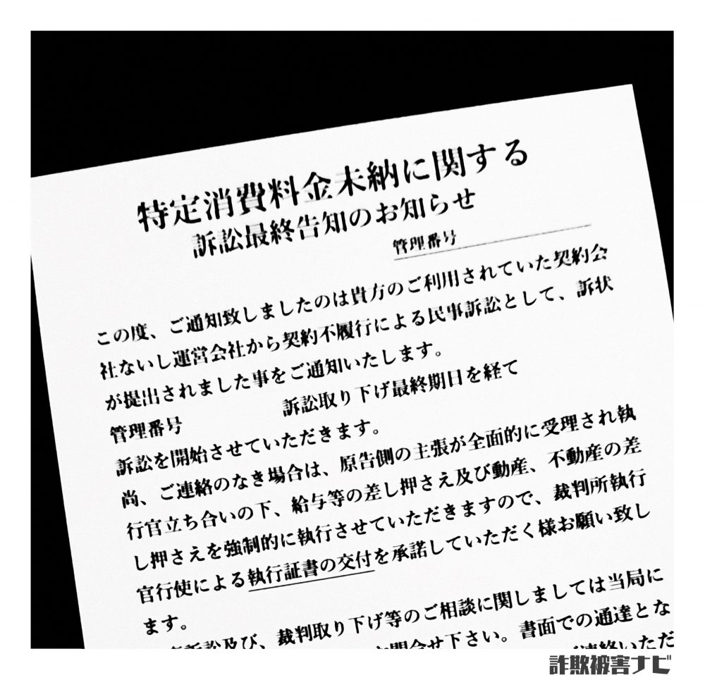 『特定消費料金未納に関する訴訟最終告知のお知らせ』と題する、電話番号(0363037292 / 03-6303-7292)の怪しいハガキでの架空請求のトラブル増えています。